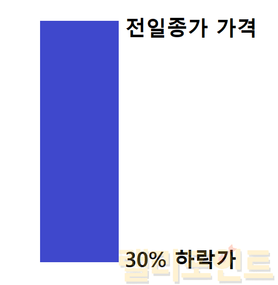 예를 들어보면 전일 종가가 10만원이였던 종목이 오늘 하한가를 달성했다면 하한가의 가격은 -30%인 7만원이 됩니다. 그래서 이 후에 아무리 더 낮은 가격에 매도를 하려고 해도 당일에는 불가능하며 하한가 가격에 걸려 있는 매도주문에 누군가가 매수를 해야지만 체결이 이루어지게 됩니다.