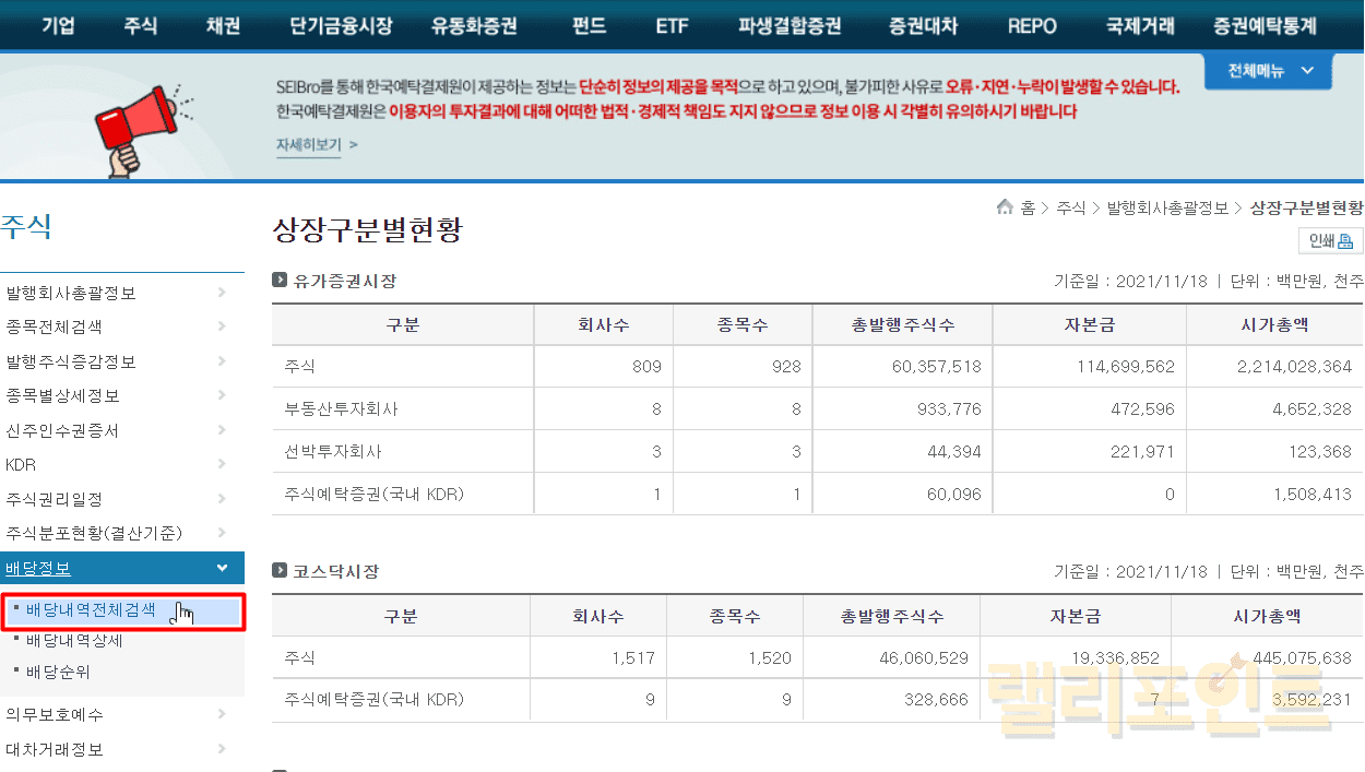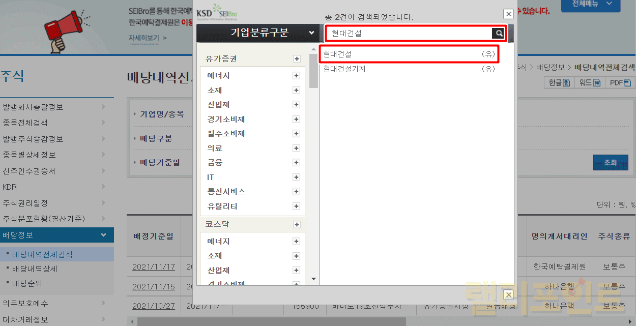 1. 배당내역전체검색을 클릭합니다.
