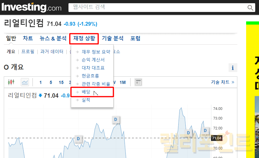 1. 배당정보를 누릅니다.