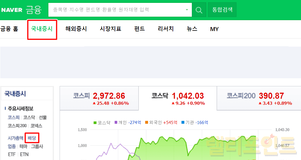 저는 국내 주식을 위주로 투자를 하고 있기에 주식 배당금 순위 조회로 코스피, 코스닥을 기준으로 설명드리도록 하겠습니다.