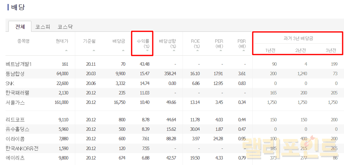 2. 주식 배당금 순위를 확인할 수 있습니다.