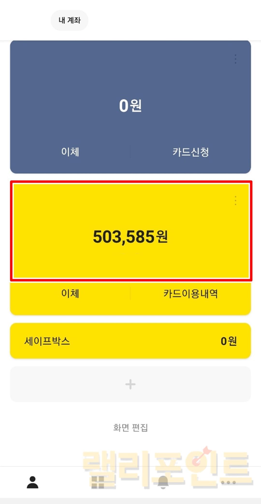 - 카카오뱅크 앱을 실행하고 모임통장을 클릭합니다.