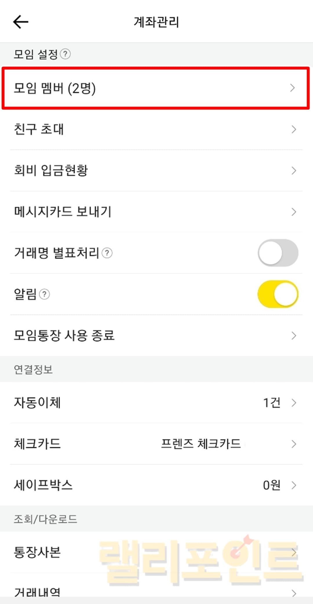통장과 연결이 끊어진 멤버들은 통장 잔고 및 거래내역 확인이 불가능해집니다.