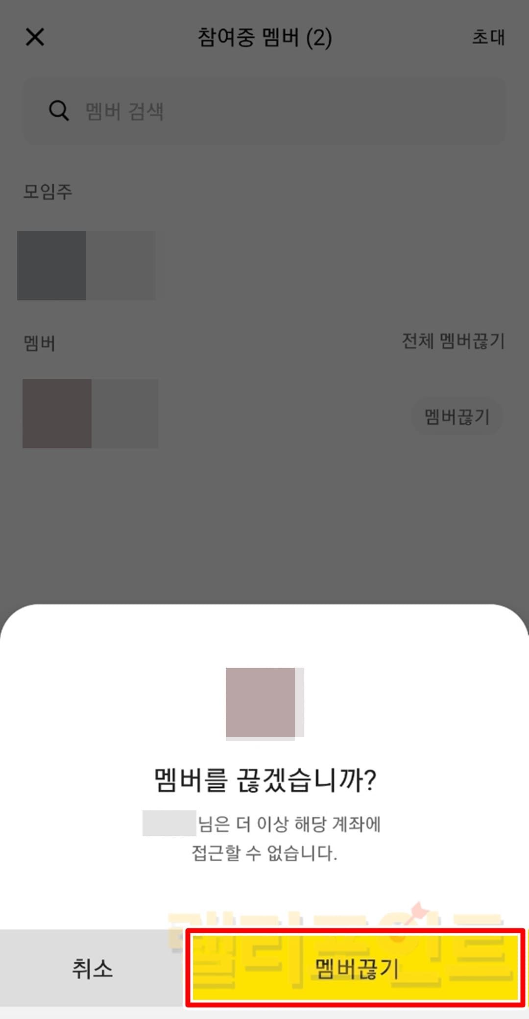 모임통장 가입 멤버 모두 멤버끊기 후 해지가 가능합니다.