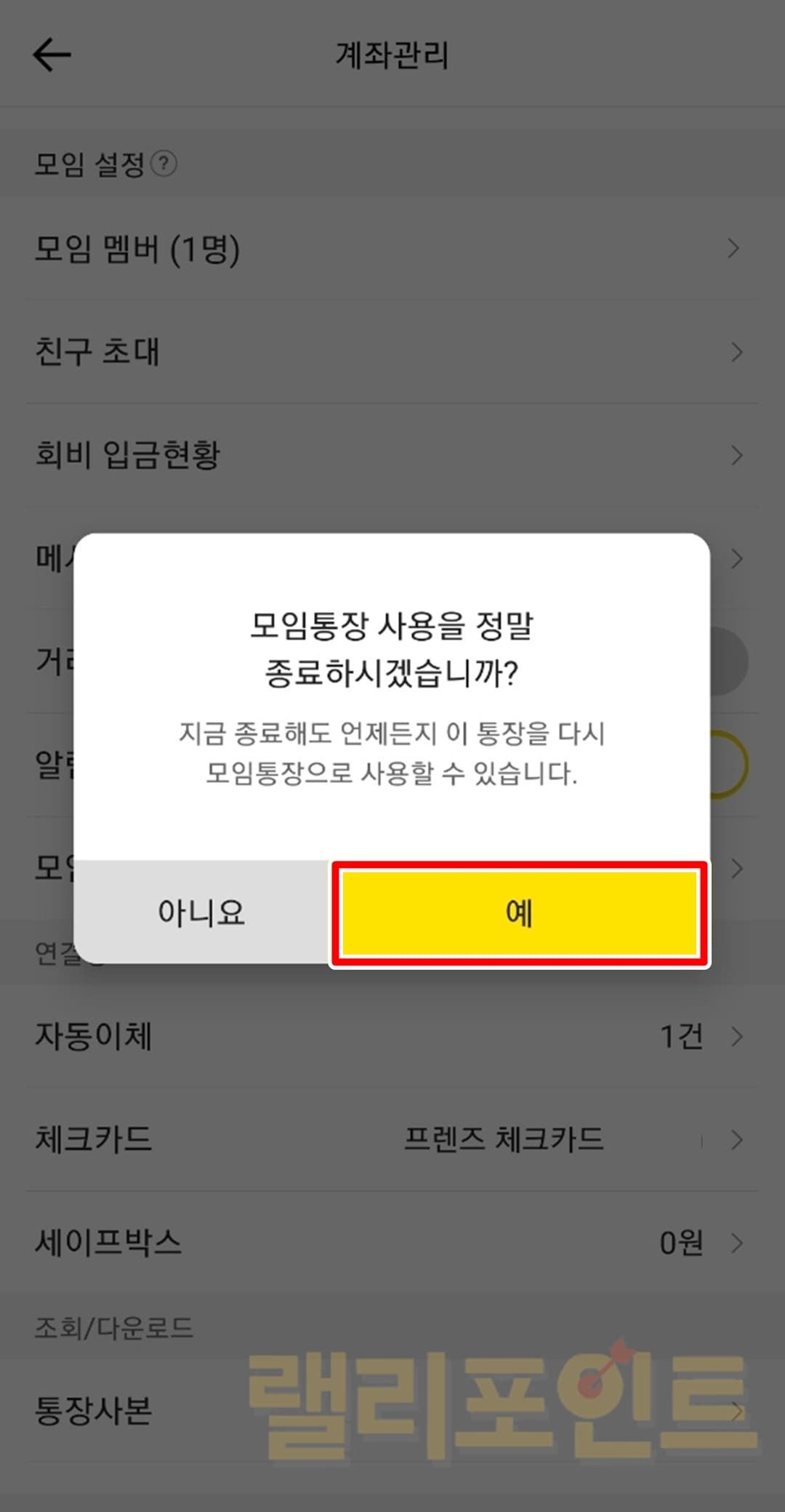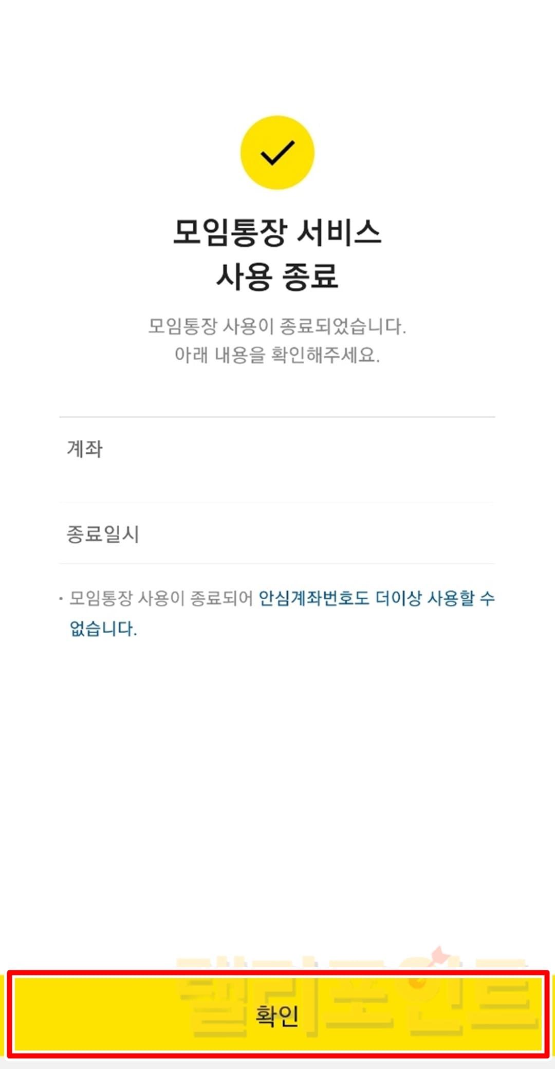 - 계좌관리에서 모임통장 사용 종료를 클릭합니다.
