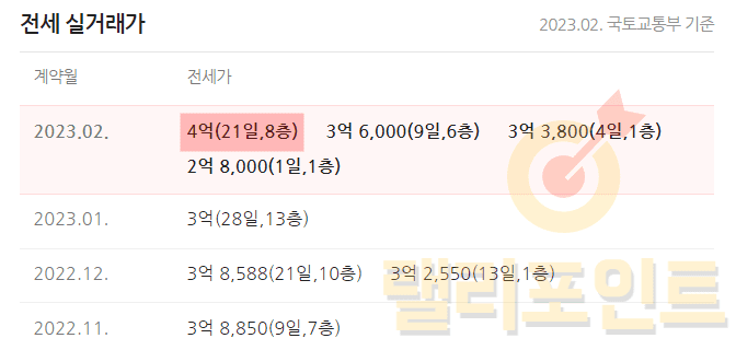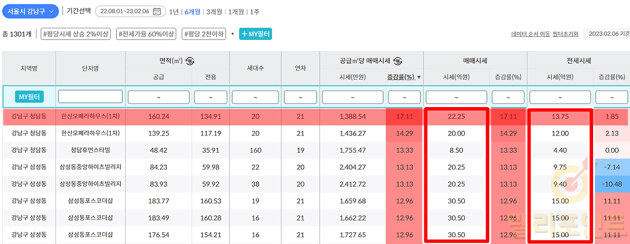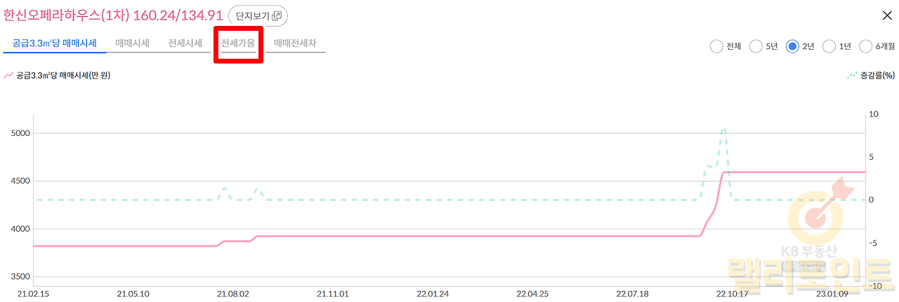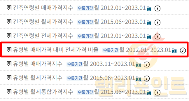 - 유형별 매매가격 대비 전세가율 비율을 누릅니다.
