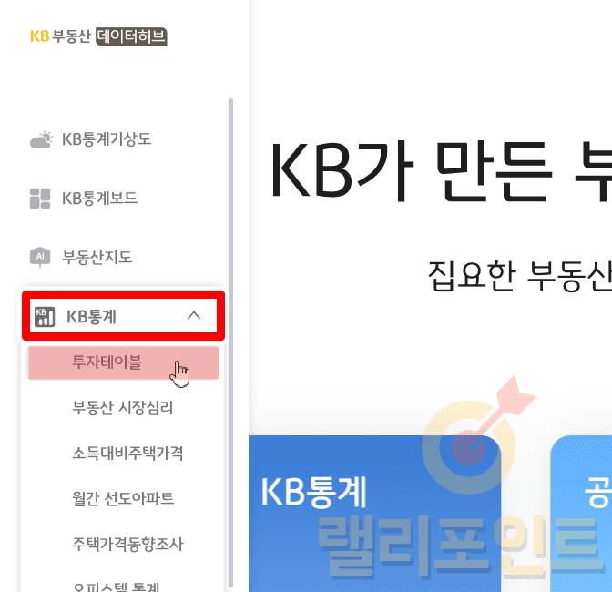 KB 부동산 데이터 허브 사이트에 접속합니다.