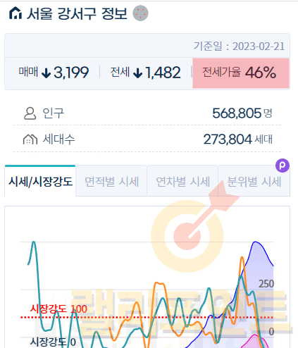 선택한 지역의 전세가율 및 시세 등의 정보를 확인할 수 있습니다.