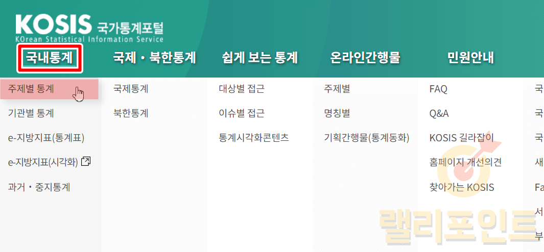 KOSIS 국가통계포털 사이트에 접속합니다.
