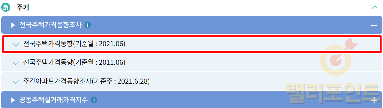 - 전국주택가격동향(최신일자)를 선택합니다.