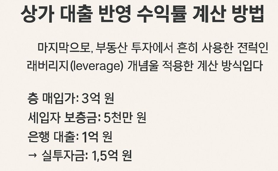 상가 대출 반영 수익률 계산 방법