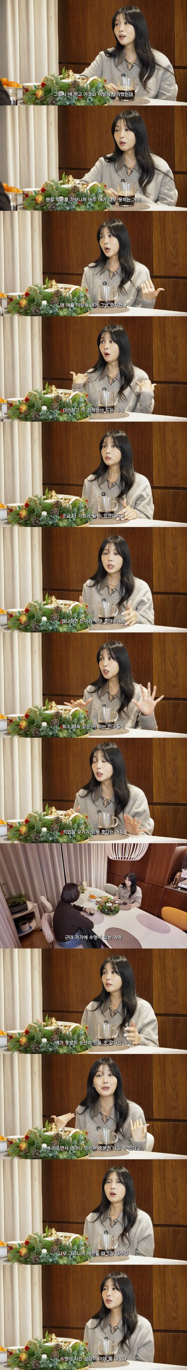 오윤아는 "정보를 받고 찾아보니까 오히려 민이한테는 조금 더 기회가 될 수 있겠더라. 우리 민이처럼 특수 체육을 하는 친구들이 직업을 갖기가 되게 좋다더라"며 "민이가 수영을 좋아하는데, 거기에 수영이 있더라. 너무 희소식이더라"고 말하며 눈빛을 반짝였다.