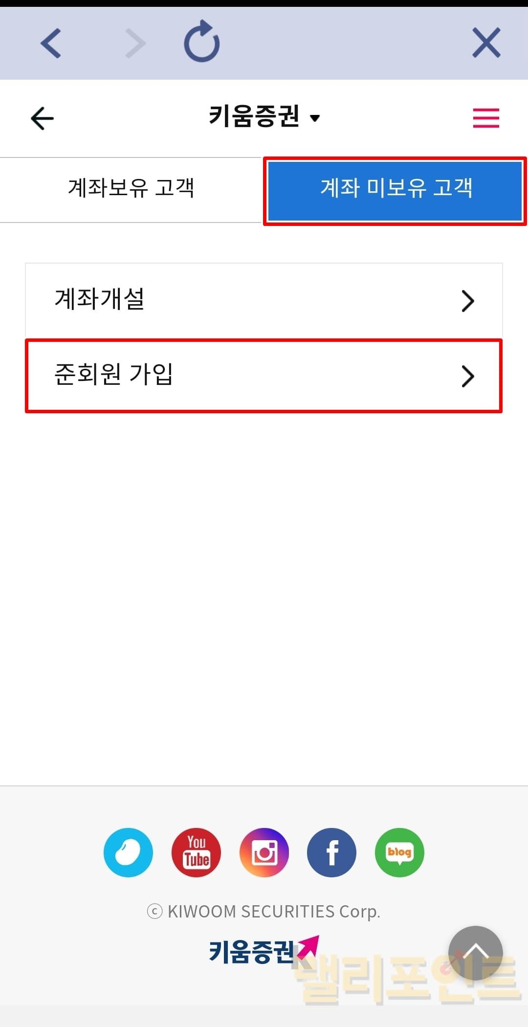 계좌 미보유 고객 > 준회원 가입을 클릭합니다.