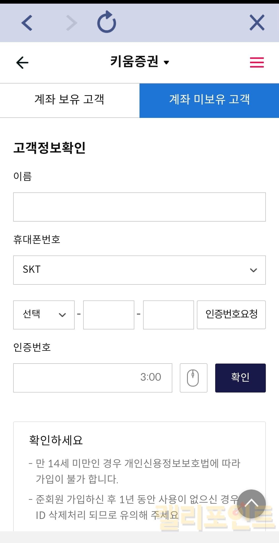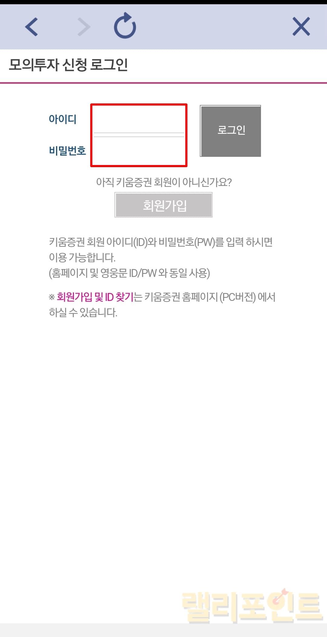 ※ 계좌 미보유로 회원가입만으로도 키움증권 영웅문 모의투자를 할 수 있습니다. 단, 실제 투자를 하기 위해서는 반드시 계좌를 개설해야 가능함으로 기억 해두시길 바랍니다.