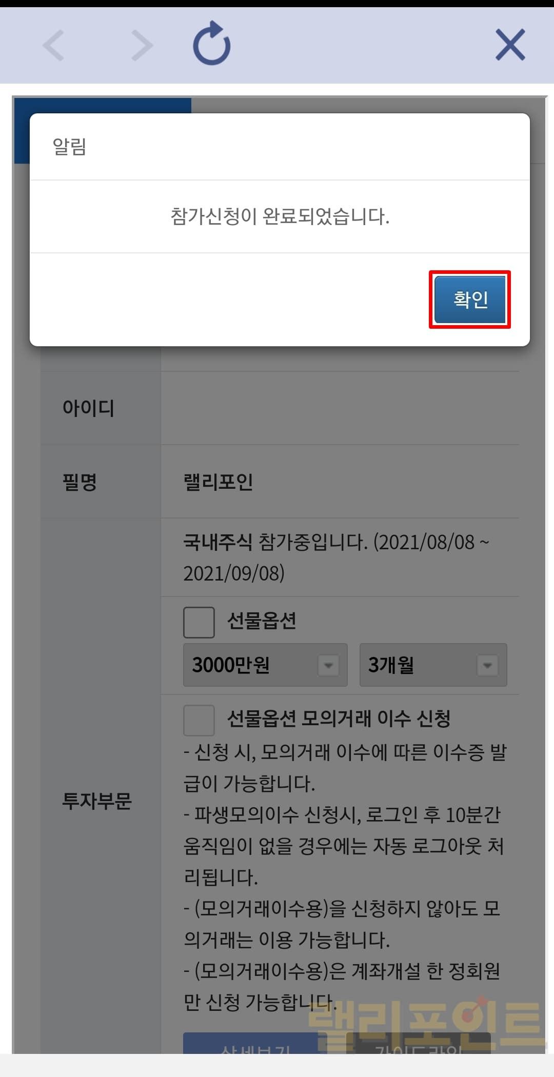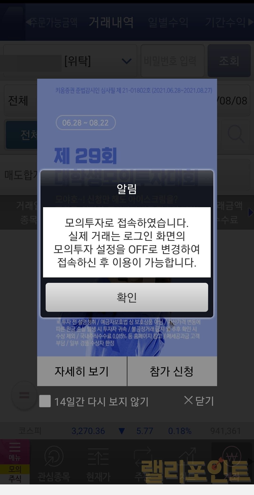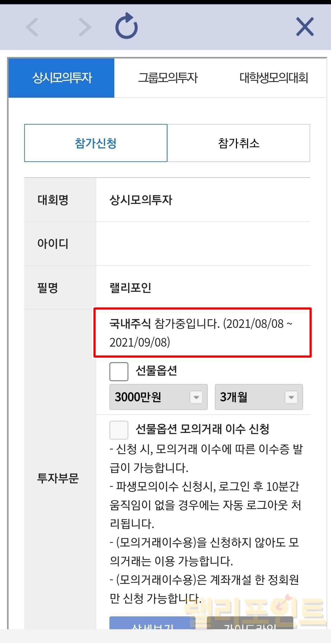 - 키움증권 영웅문 모의투자 참가가 완료되었습니다.