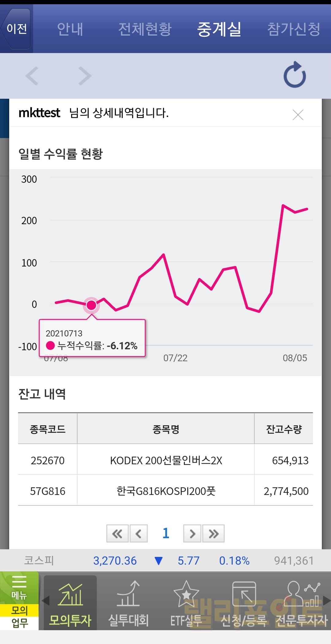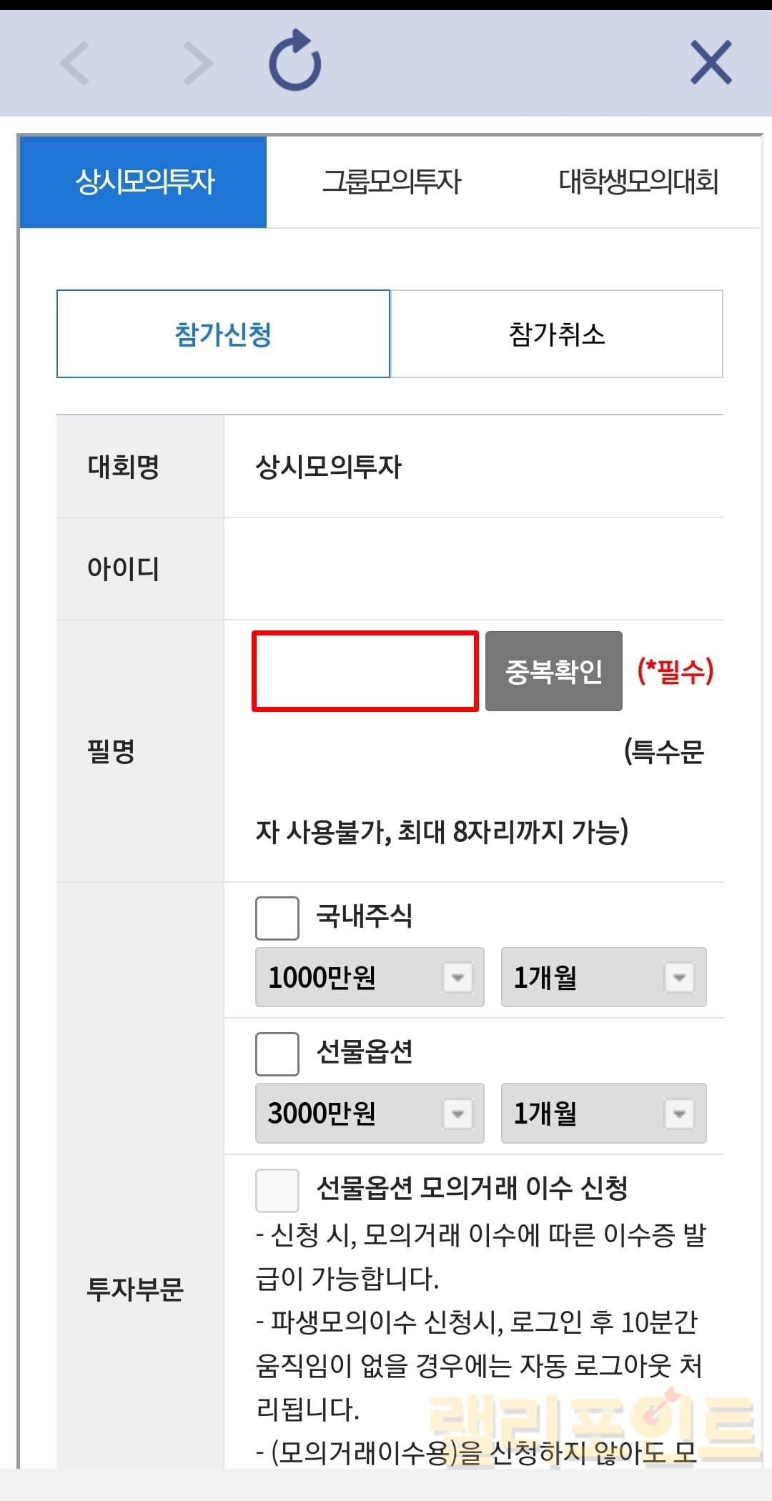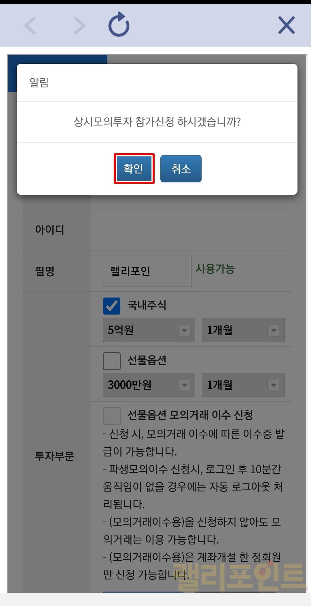 - 키움증권 영웅문 모의투자 참가가 완료되었습니다.