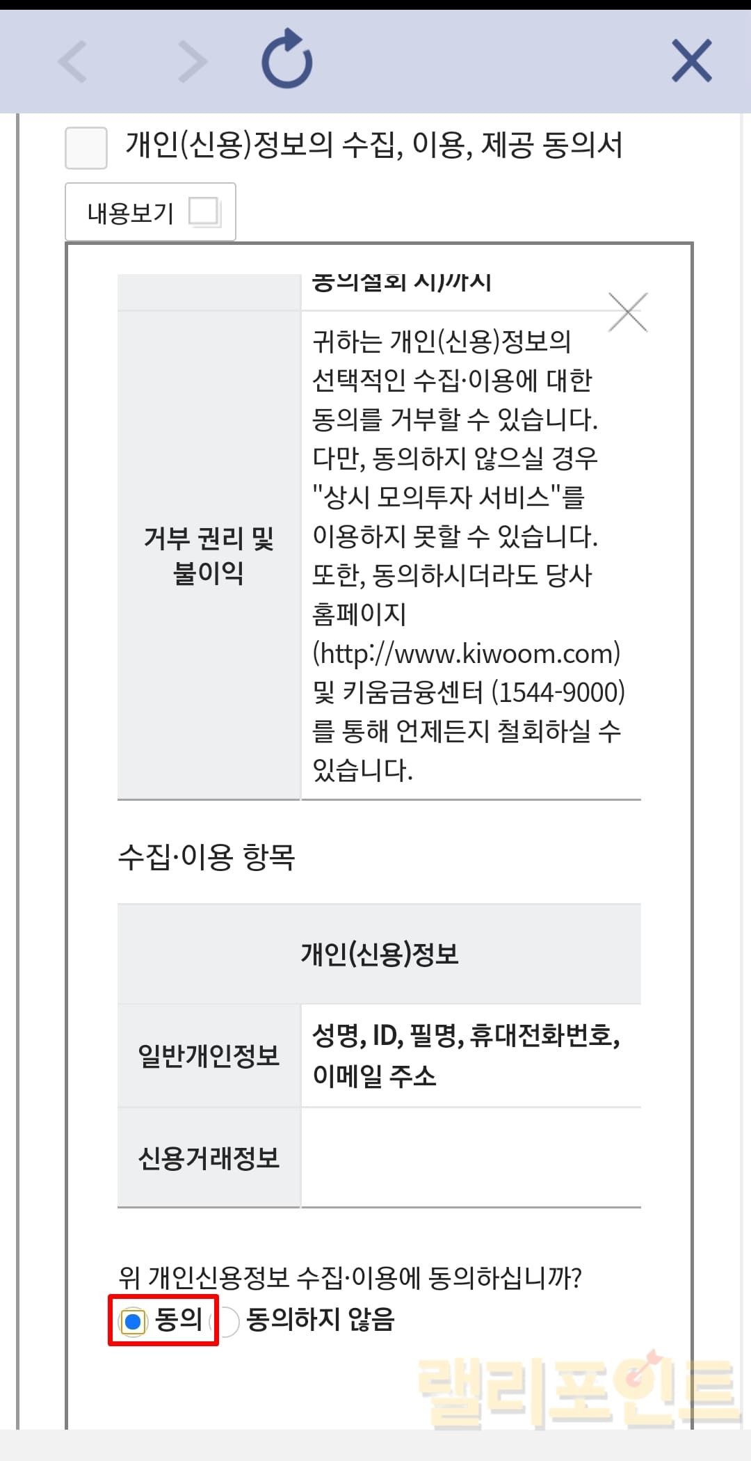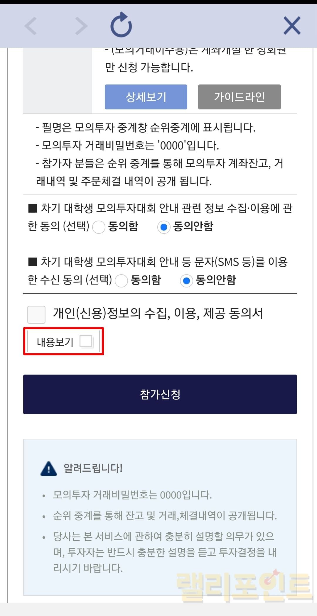 내용 보기를 누르고 모든 약관에 동의를 체크합니다.