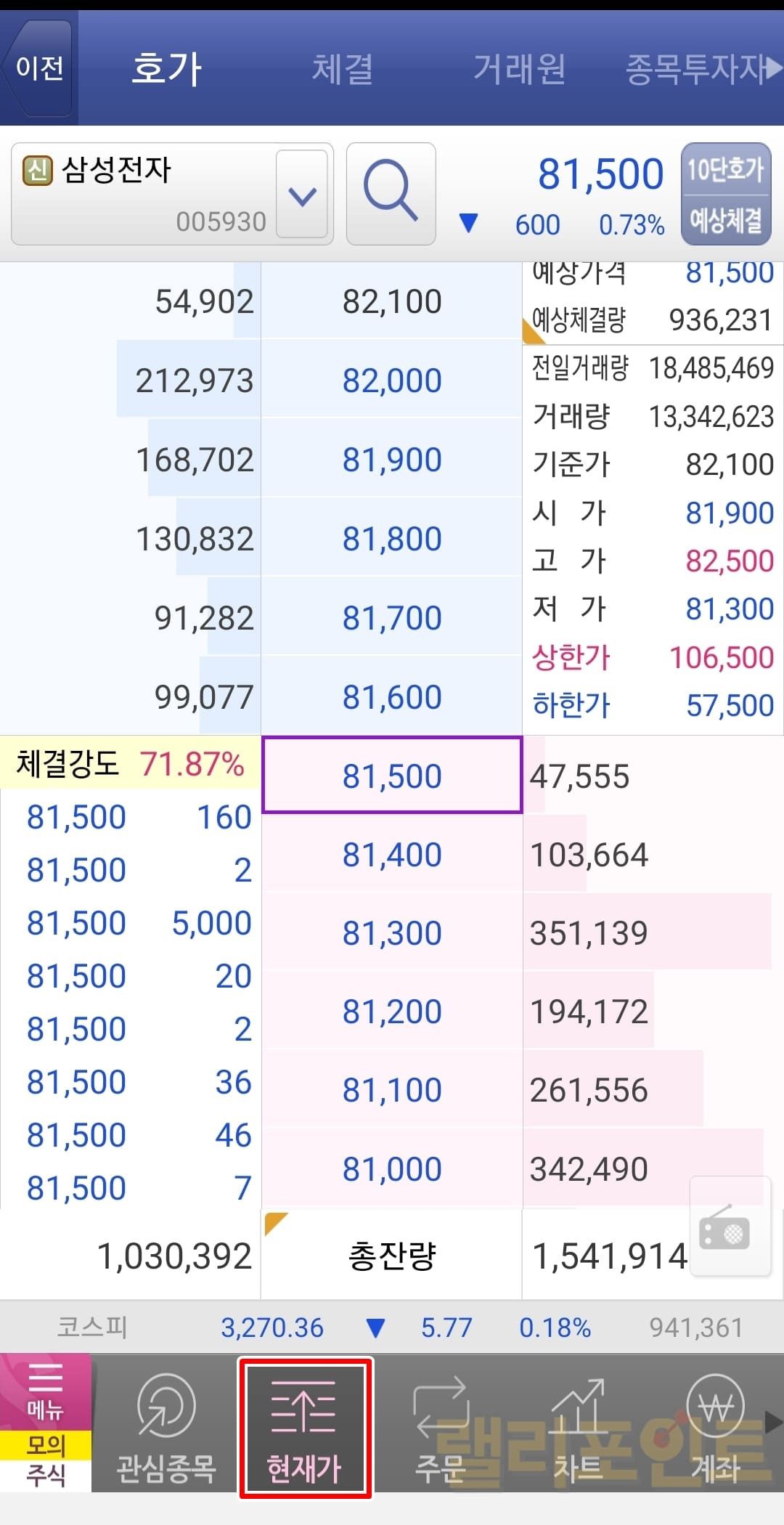 현재가에서 주식의 가격을 확인할 수 있습니다.