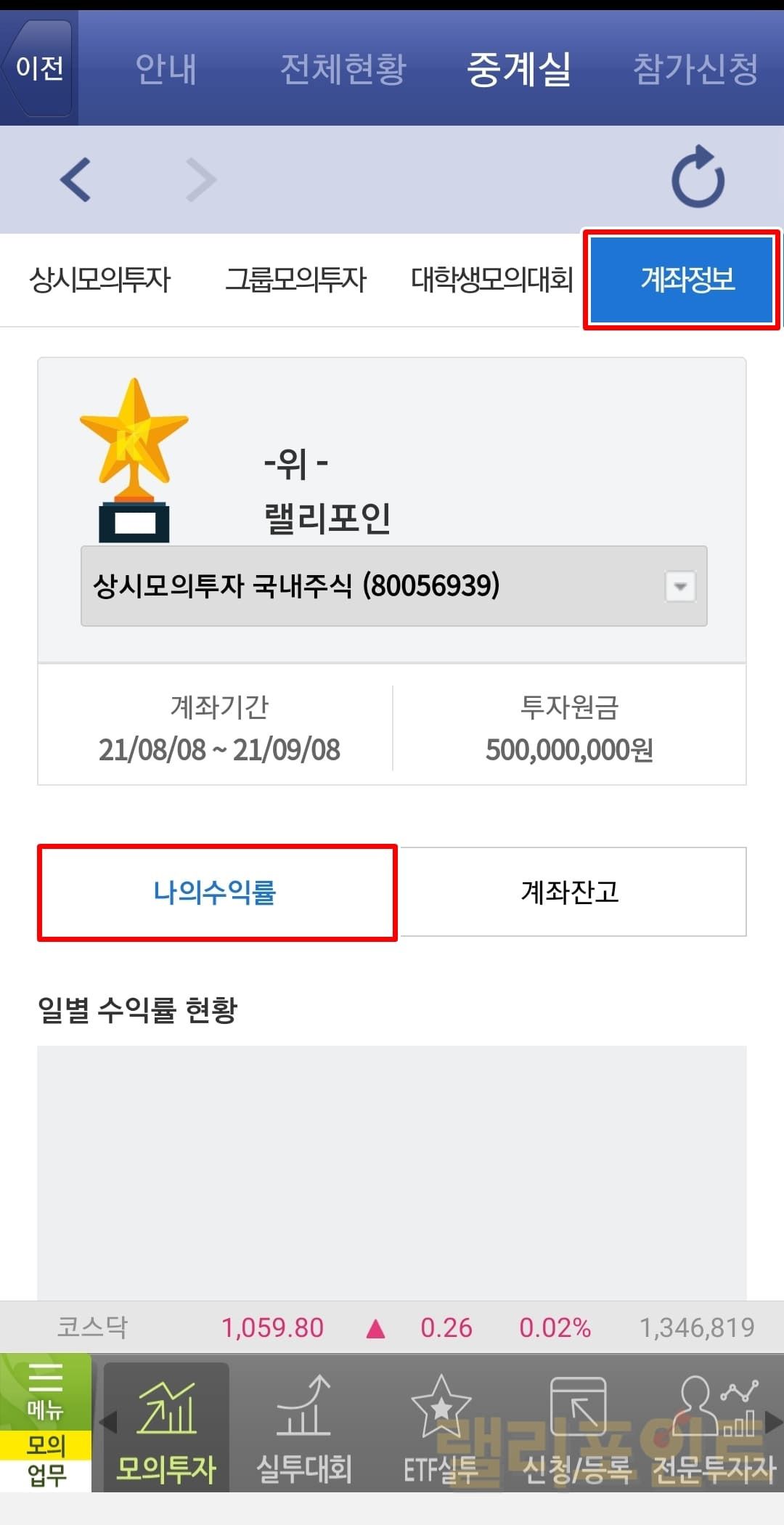 계좌정보를 누르면 나의 일별 수익률을 확인할 수 있습니다.