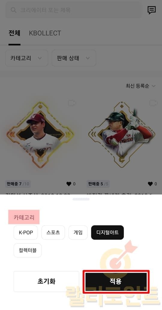 - 관심있는 카테고리를 체크하고 적용을 누릅니다.