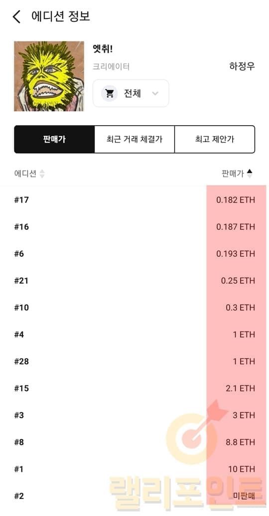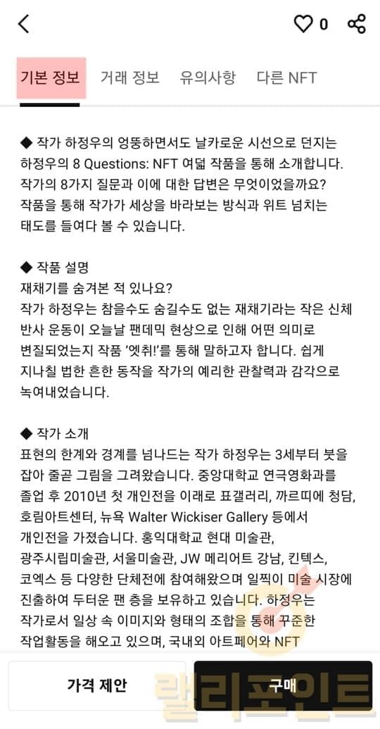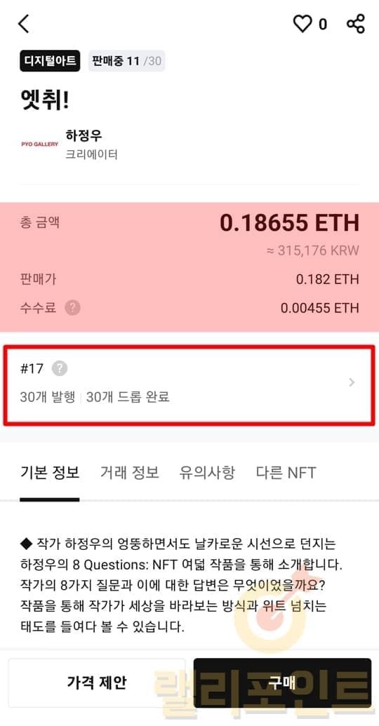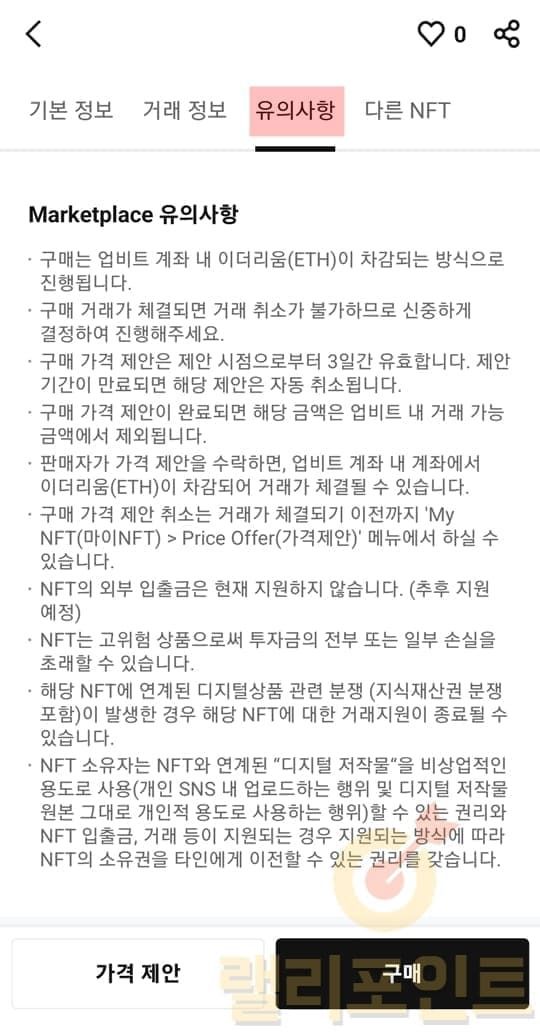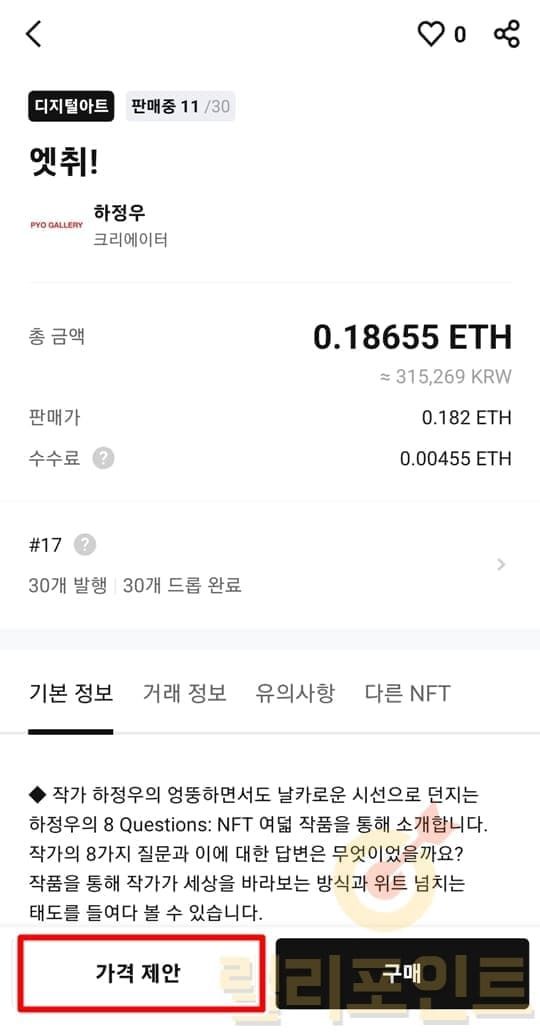 위에서 확인한 NFT 발행량별 가격 및 가격 변동 흐름을 참고하시면 적절한 할인가에 NFT를 구매할 수 있으니 가격 제안 기능을 적극 사용하시는 것을 추천드립니다.