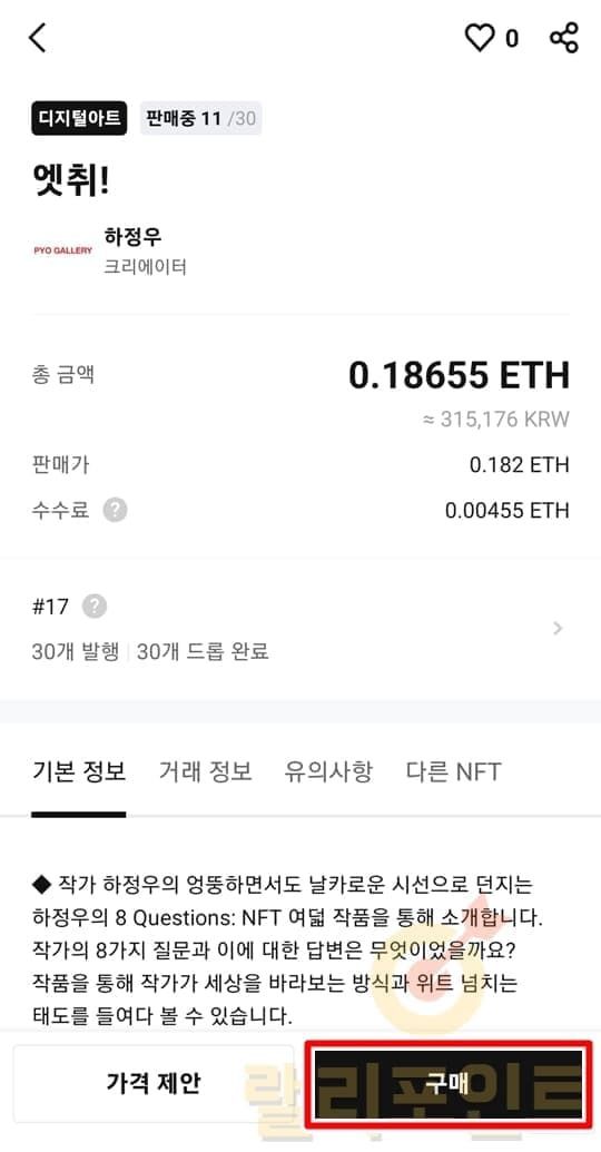 - NFT가 마음에 드신다면 구매 버튼을 클릭합니다.