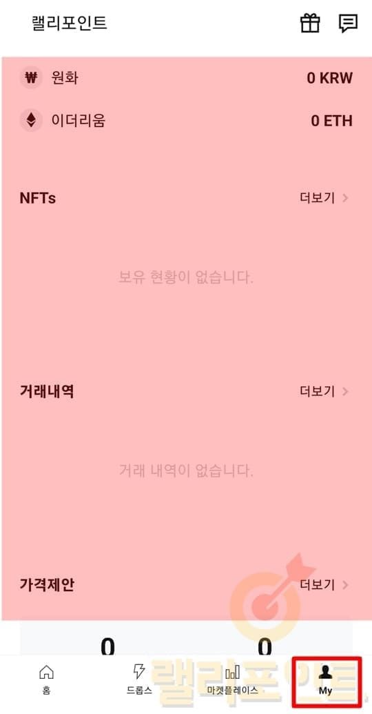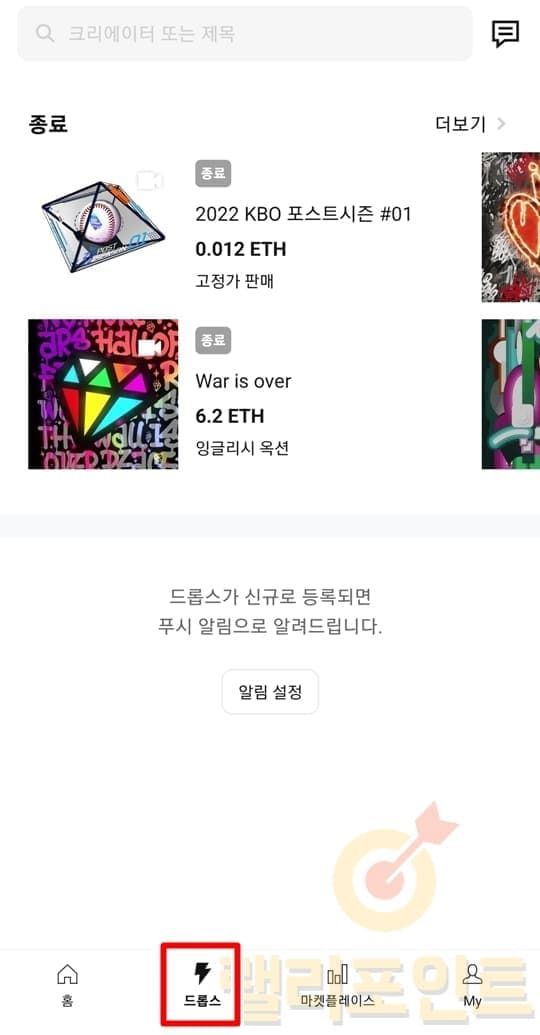 - 업비트 앱의 NFT 화면에서 드롭스를 클릭합니다.