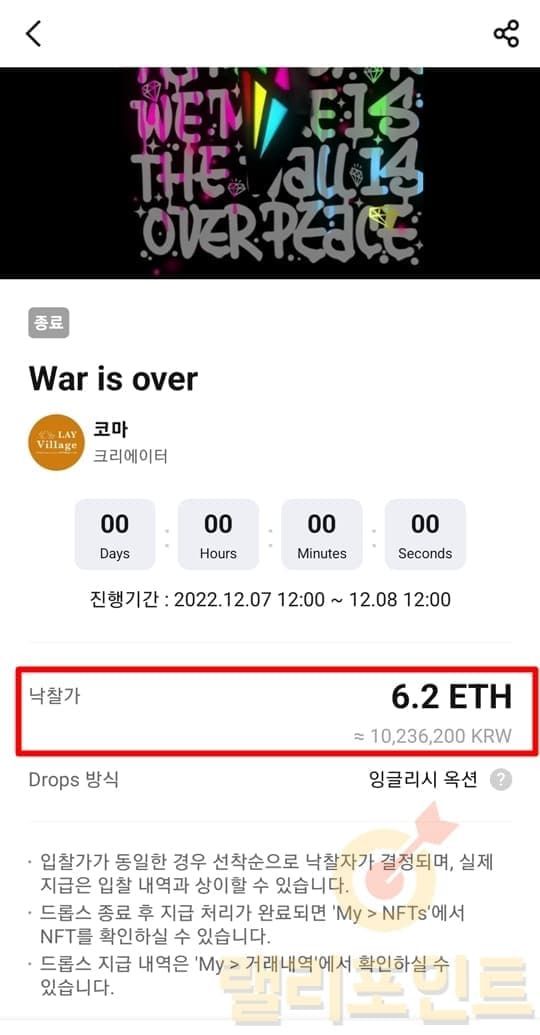 - 진행중인 NFT 드롭스 방식에 따라 낙찰가로 구매합니다.