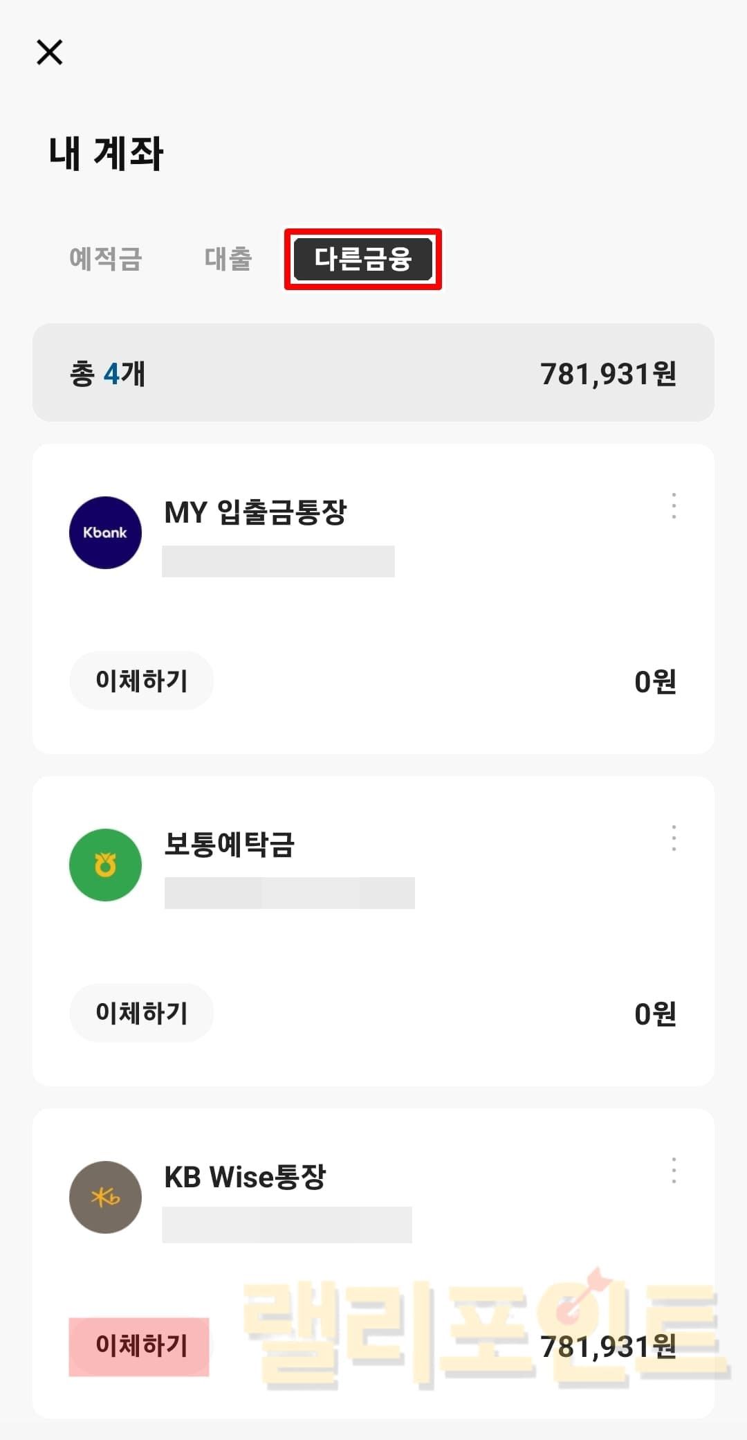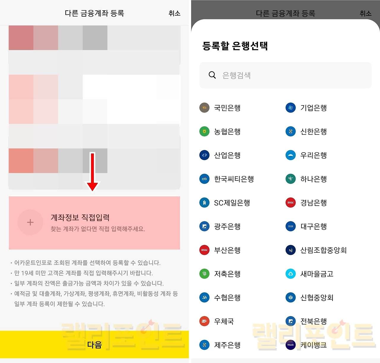 - 다른 금융계좌 등록을 클릭합니다.