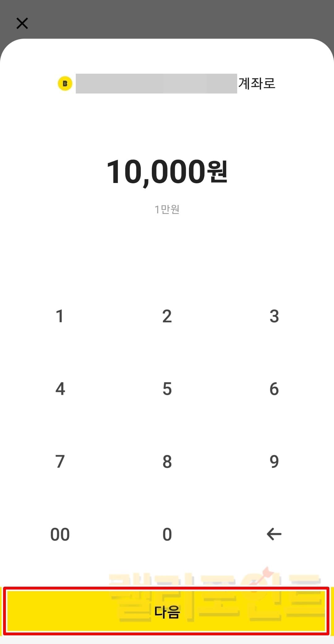 - 보낼 금액을 기입하고 다음을 누릅니다.