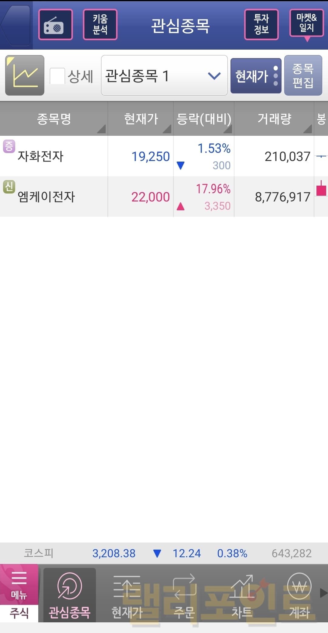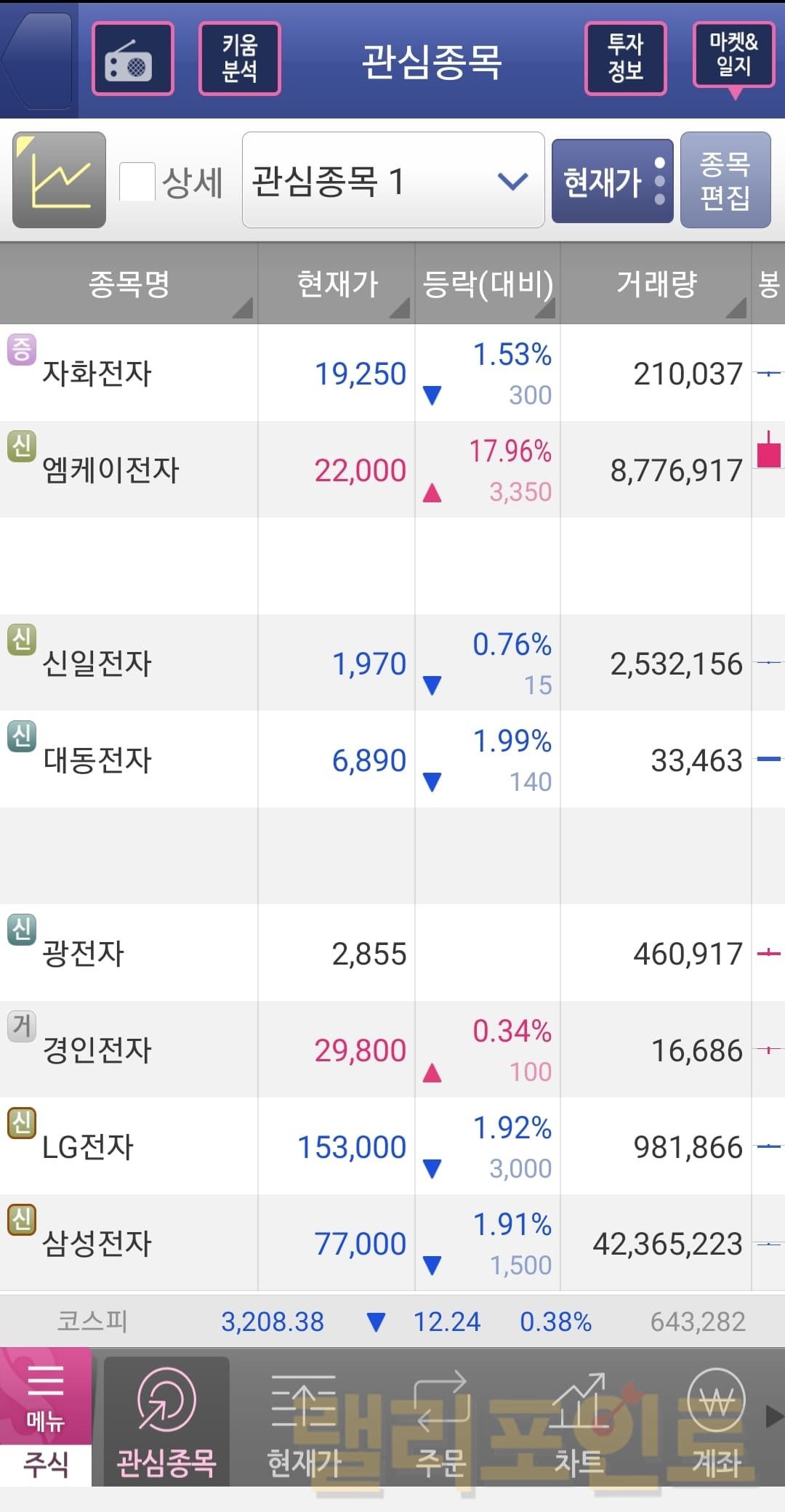 위 방법으로 보고싶은 모든 관심종목을 찾아서 등록합니다.