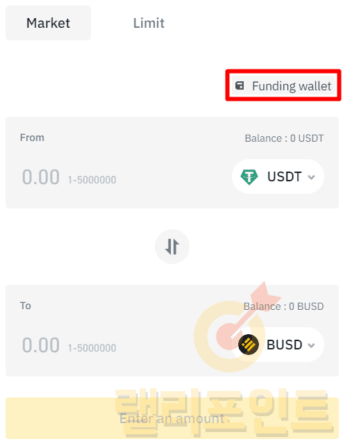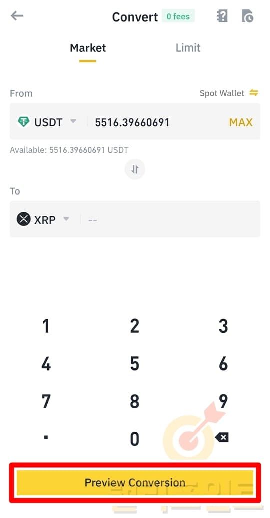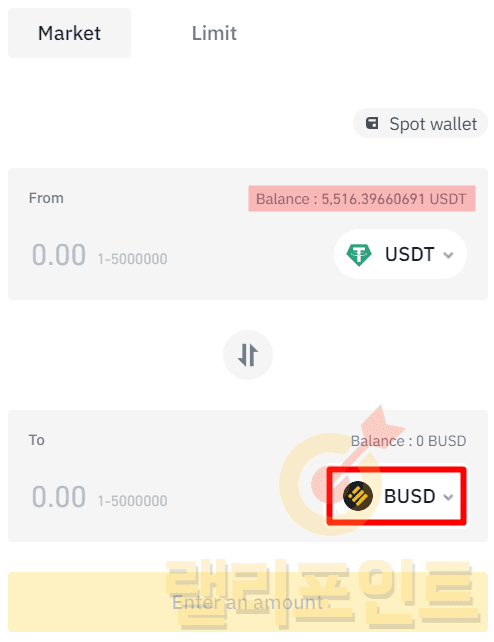 1. USDT에서 MAX 버튼을 누르거나 변환할 금액을 직접 기입합니다.