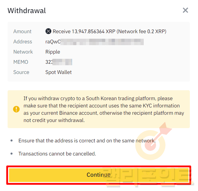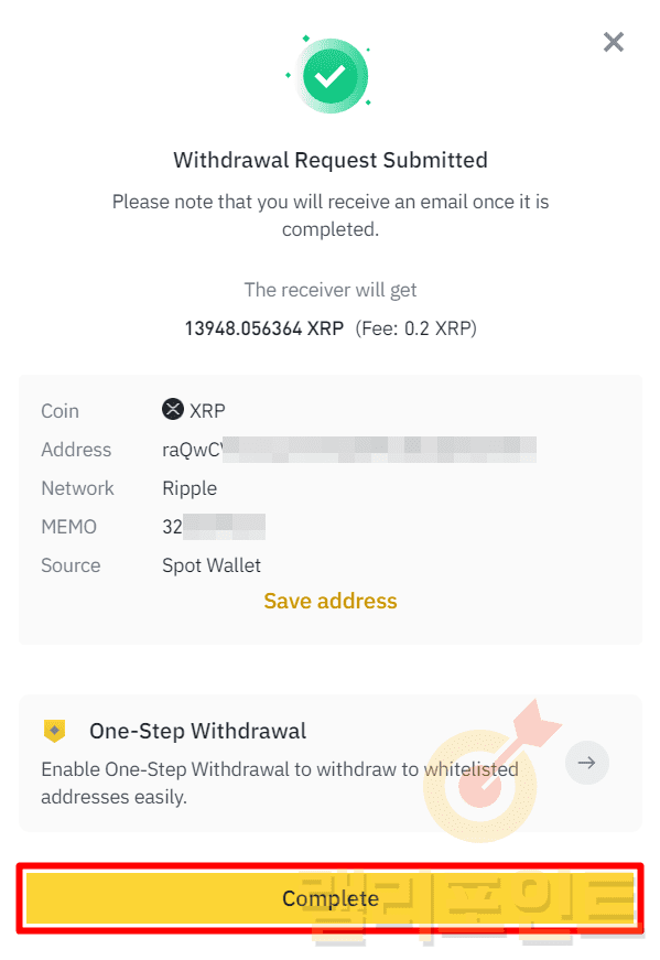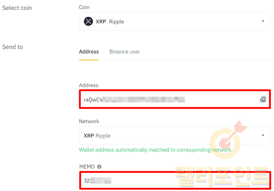 1. 다시 바이낸스로 돌아와서 지갑 Address와 MEMO에 붙여넣습니다.