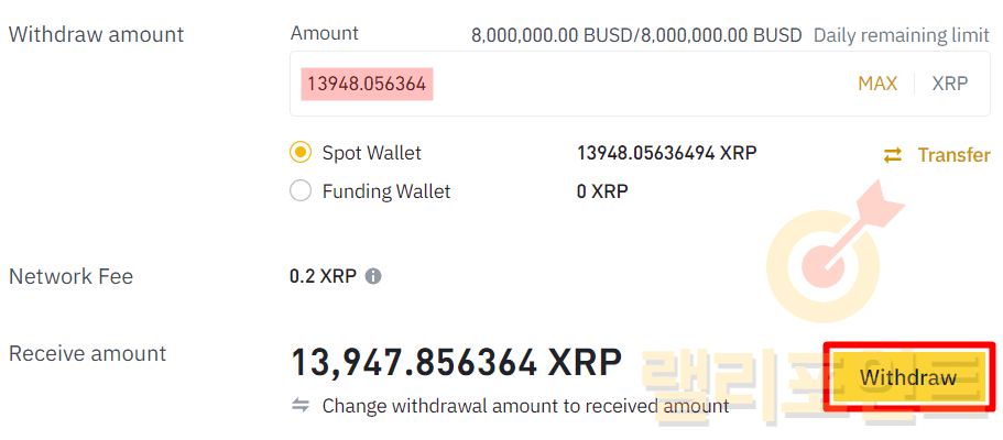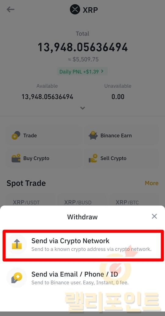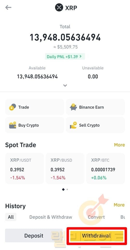 1. Wallets > Spot > XRP 코인을 누릅니다.