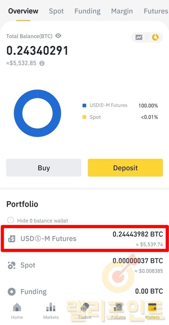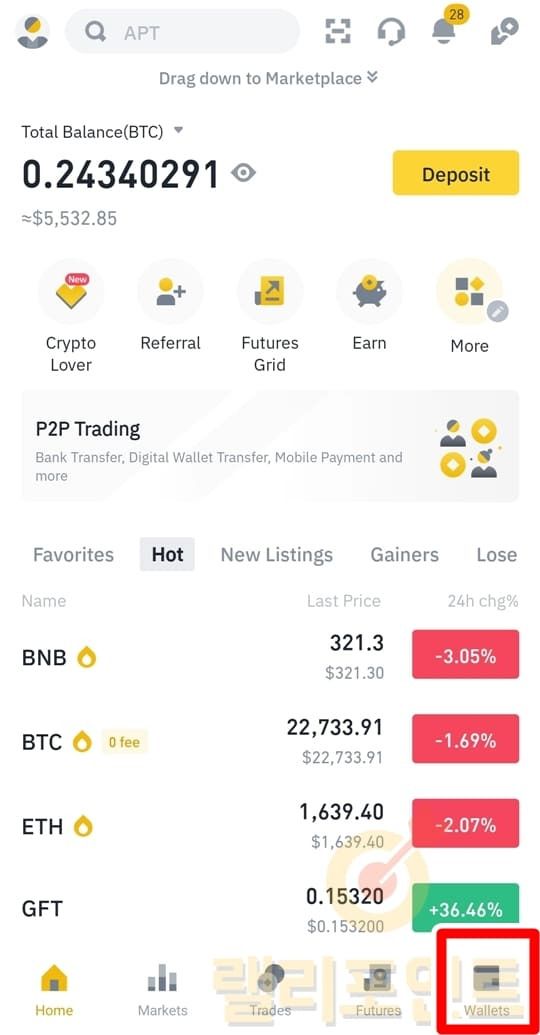 1. 바이낸스 어플에서 Wallets를 누릅니다.