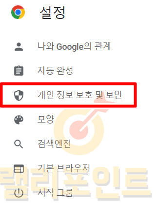 1. 개인 정보 보호 및 보안을 클릭합니다.