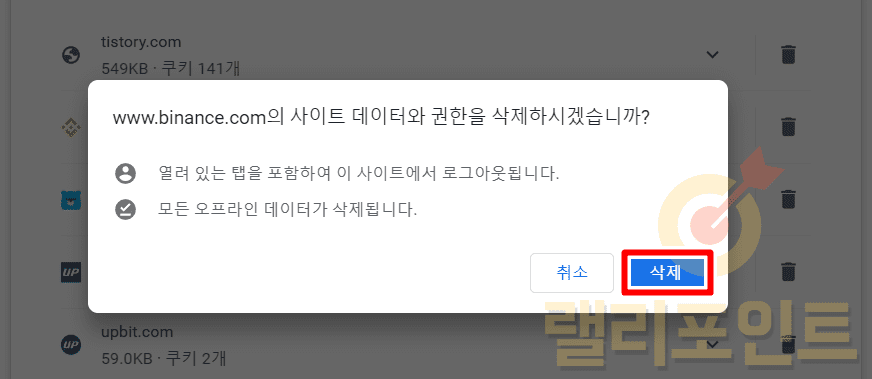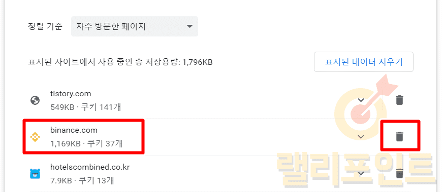 4. 인터넷 쿠키 삭제로 바이낸스 차트 초기화하기