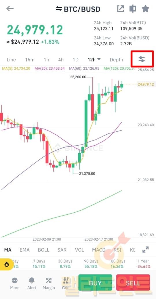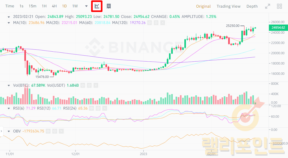 1. 바이낸스 차트 위의 그래프 모양 버튼을 누릅니다.