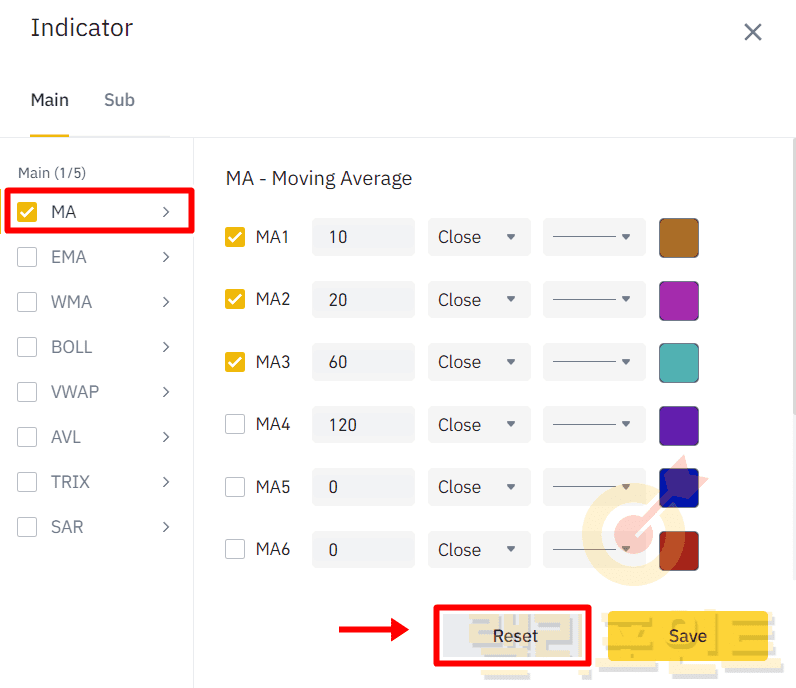 3. 바이낸스 차트 보조지표 리셋으로 초기화하기