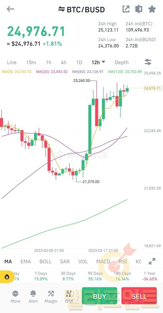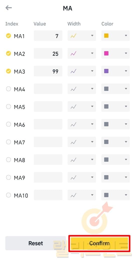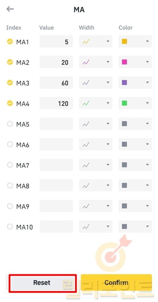 2. 모바일 바이낸스 차트 설정 초기화 방법