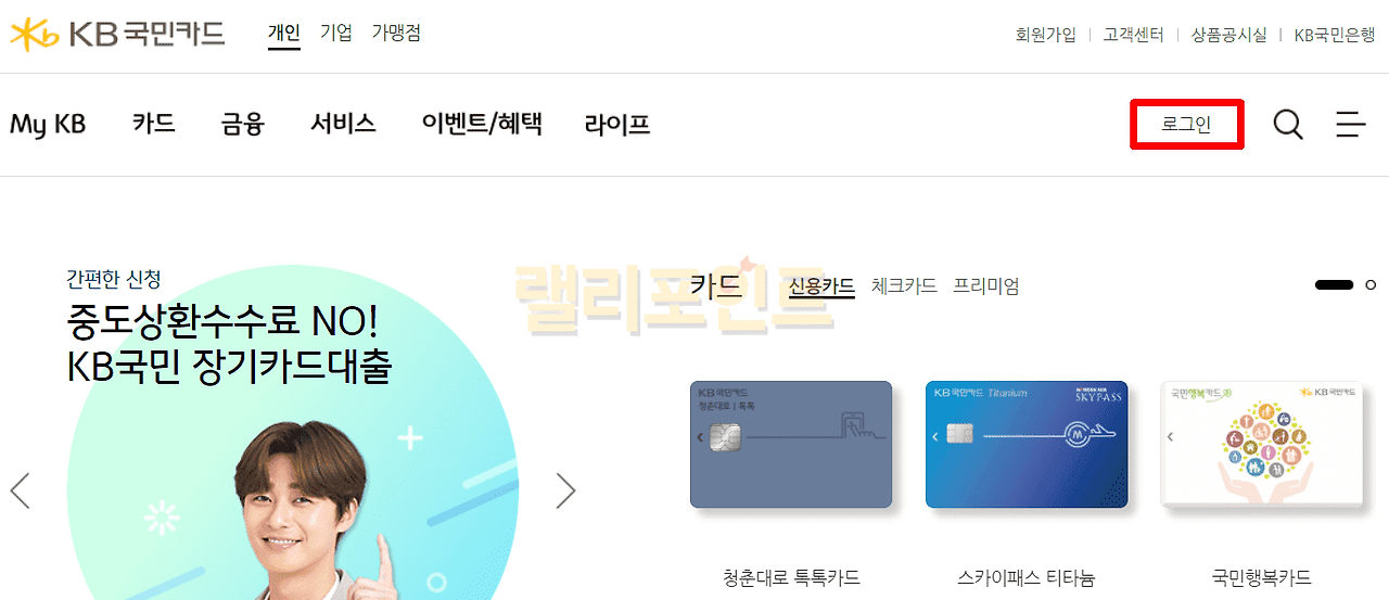 1. PC에서 KB국민카드 사이트에 로그인합니다.