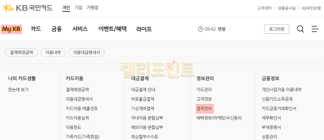 1. MY KB > 정보 관리 > 결제정보를 클릭합니다.