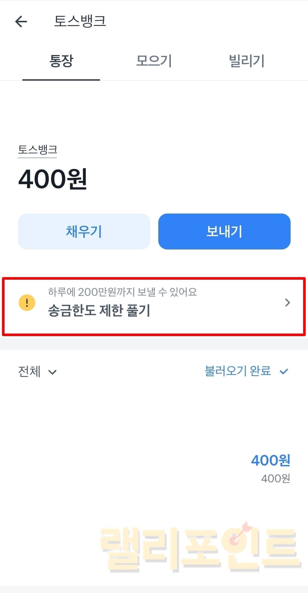심사 후 토스뱅크 송금한도 제한이 해제됩니다.