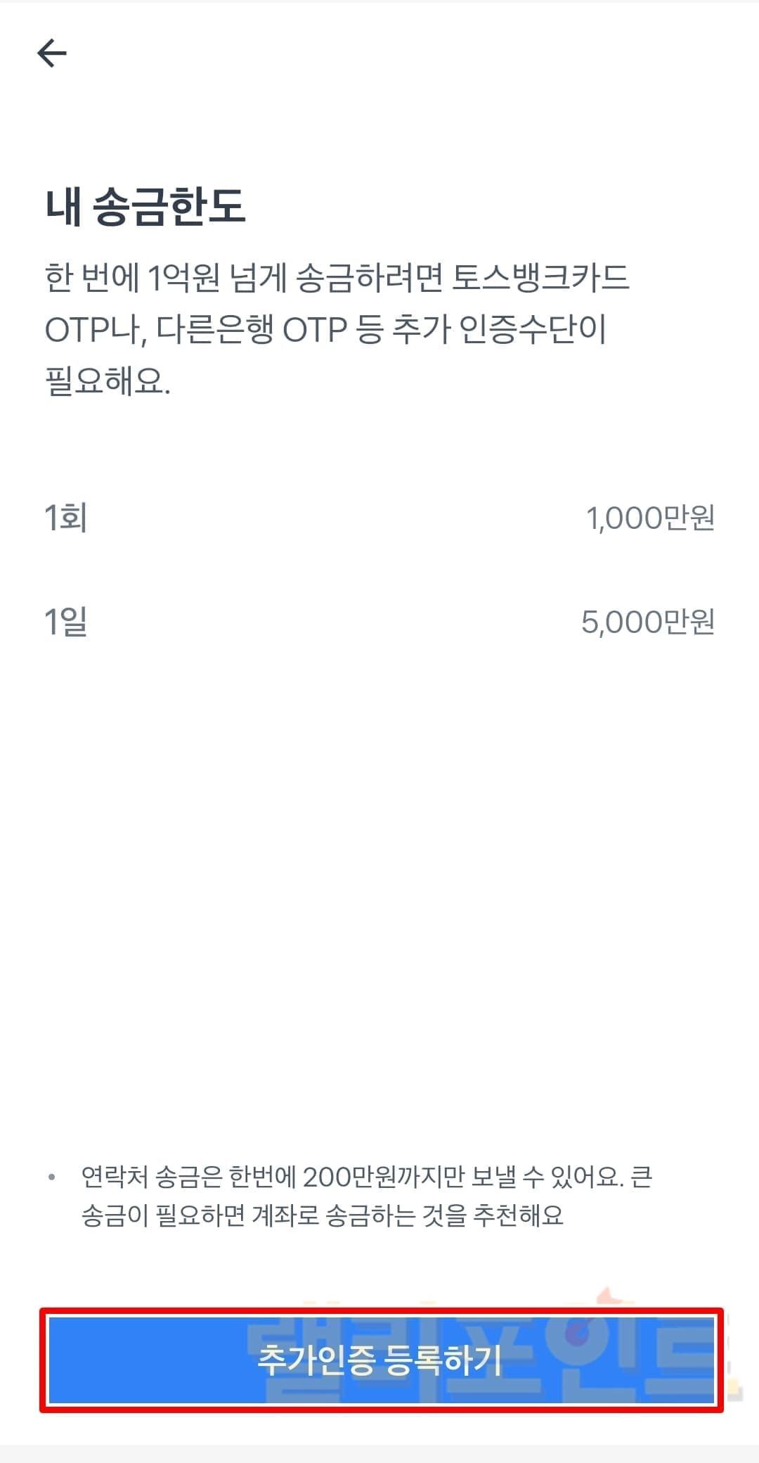 - 추가인증으로 토스뱅크 송금한도를 늘립니다.