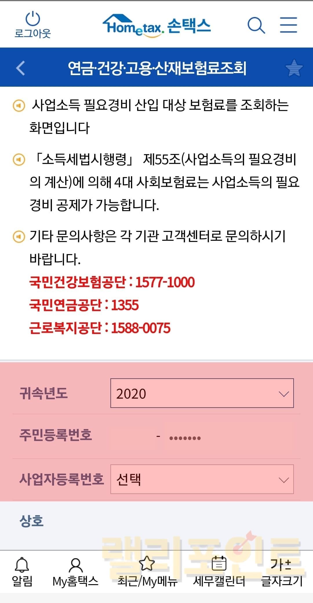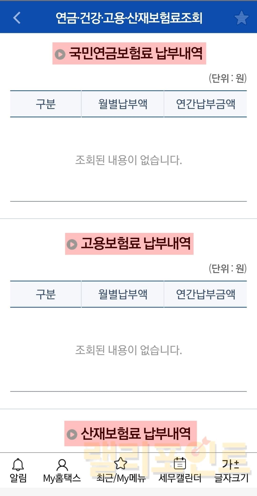 손택스로 국민연금/건강/고용/산재보험료 조회하기