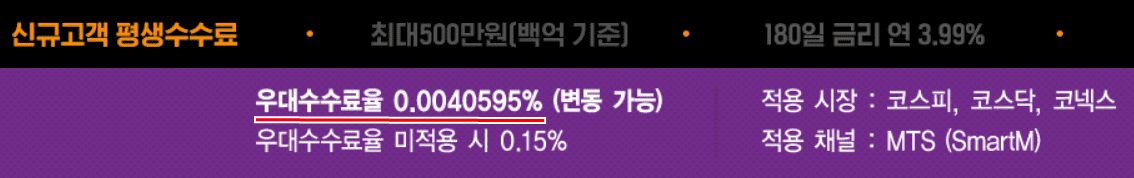 위와 같이 주식계좌 비대면개설시 평생우대 수수료 혜택이 많은데 완전 무료가 아닌 이유는 '유관기관수수료'가 발생하기 때문입니다. 그래서 이벤트 안내시 '무료'라는 단어가 문제가 된 적이 있는데 이렇게 혜택을 받게 되면 증권사에 납부해야하는 주식 매매 수수료인 위탁수수료는 무료라고 생각하시면 되겠습니다. 다만, 본인의 계좌를 확인해보았을 때 우대혜택을 받지 못할 경우 보통 0.15%가 발생하게 되는데 이 경우 100만원 매수, 매도시 각 1,500원의 위탁수수료를 내게 됨으로 증권사 이관을 통해서 평생 우대수수료 혜택을 받는 것을 추천드립니다.