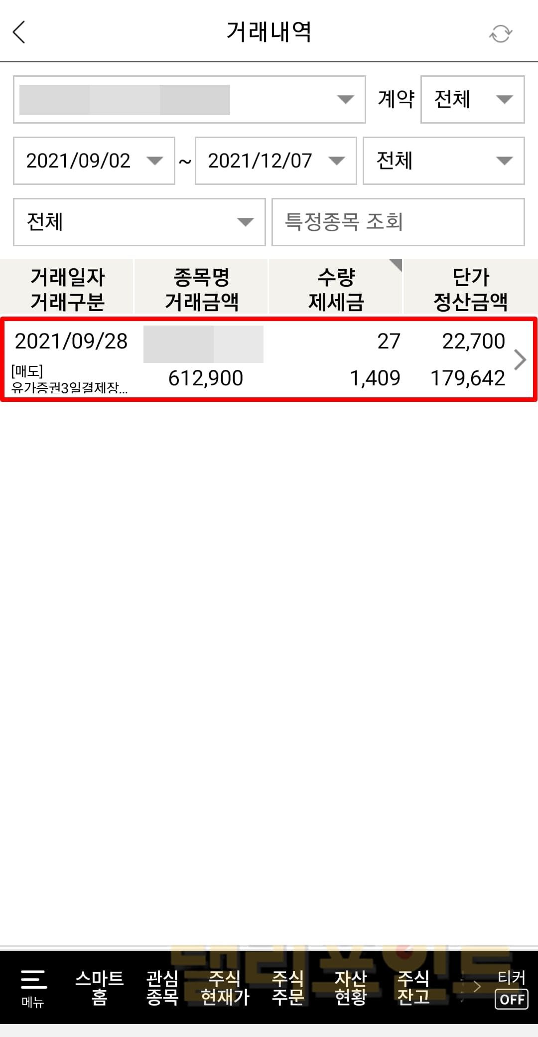 ↑ 거래내역에서 보고 싶은 매수, 매도 내역을 찾고 클릭합니다.