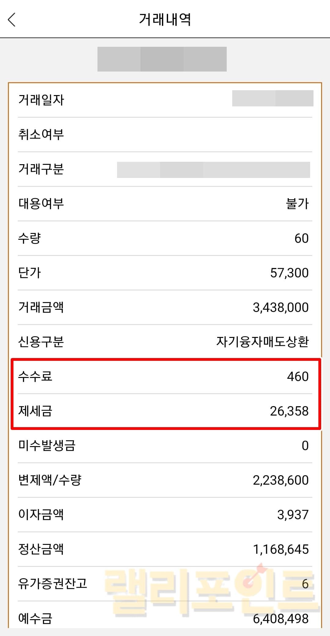 ↑ 해당 거래에서 발생한 수수료, 제세금을 확인할 수 있습니다.