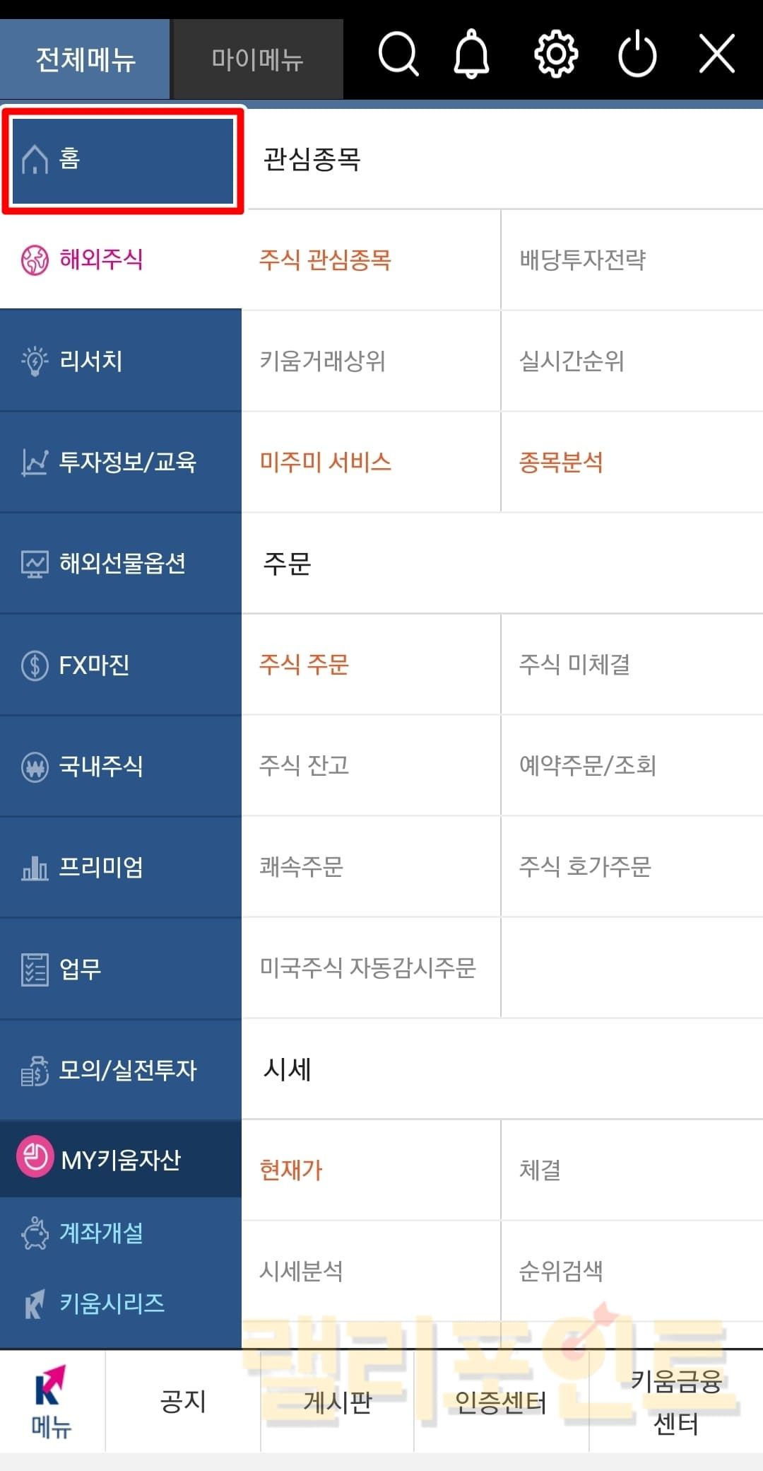 1. 키움증권 영웅문S 글로벌 어플을 실행합니다.