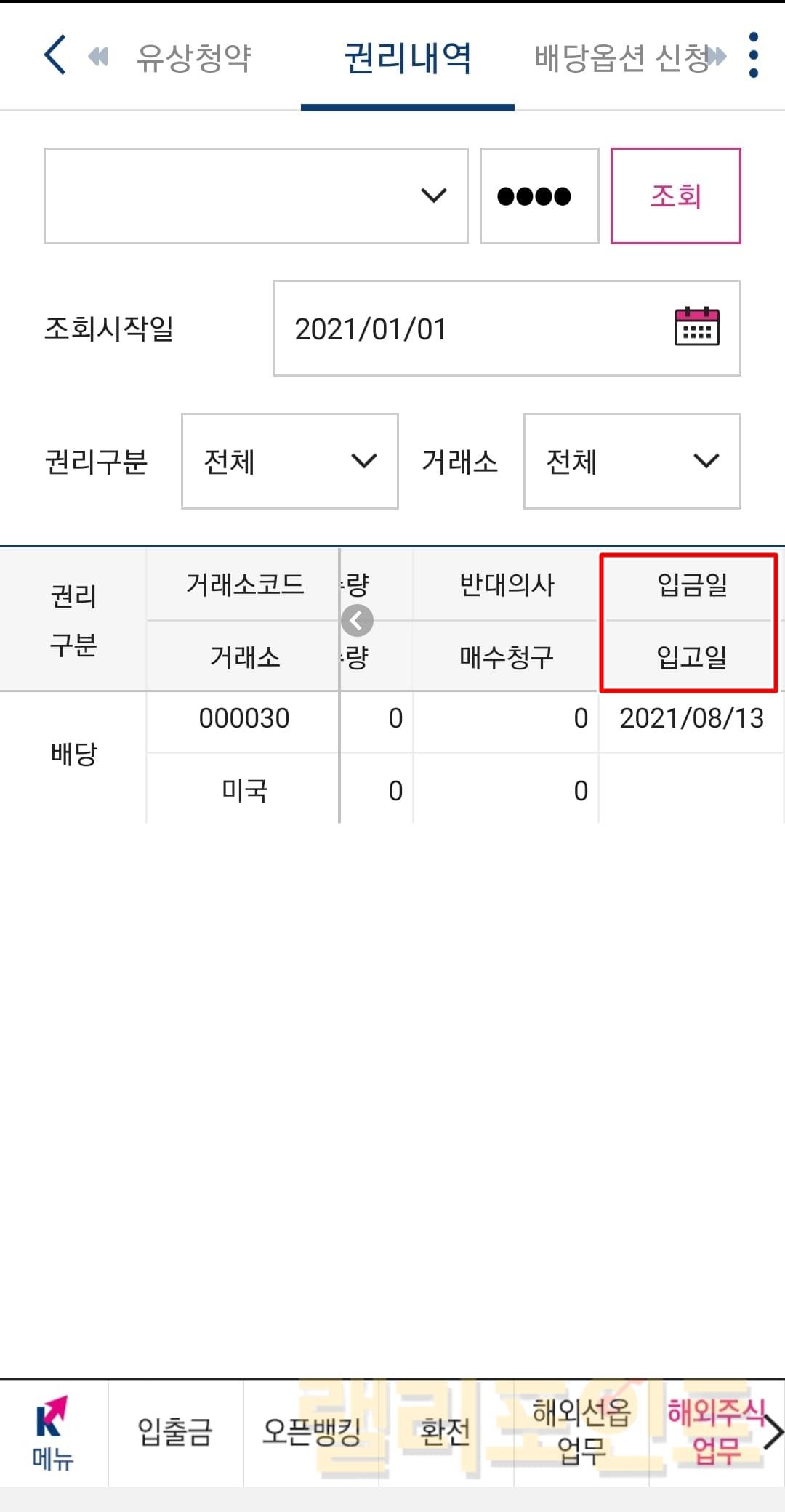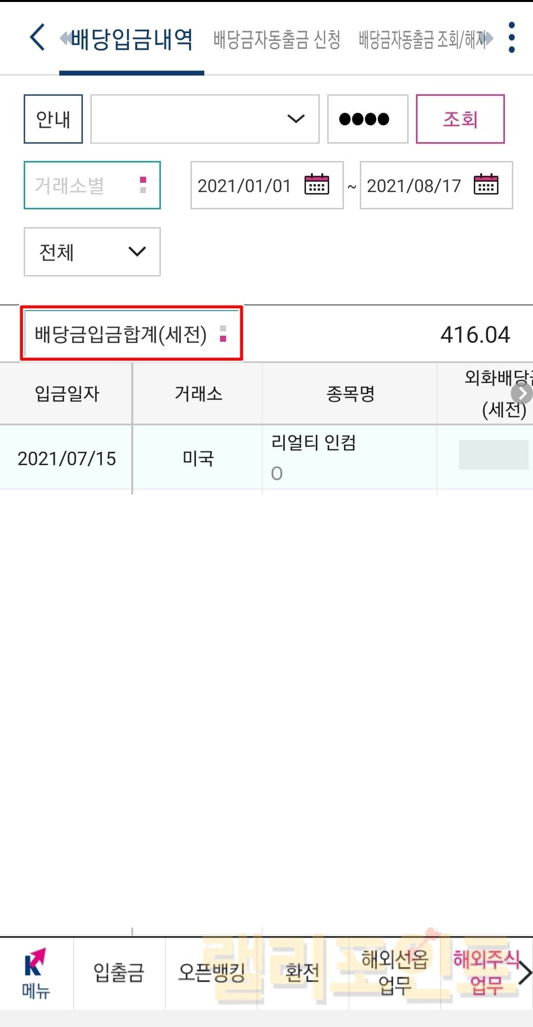 배당 입금 내역 조회